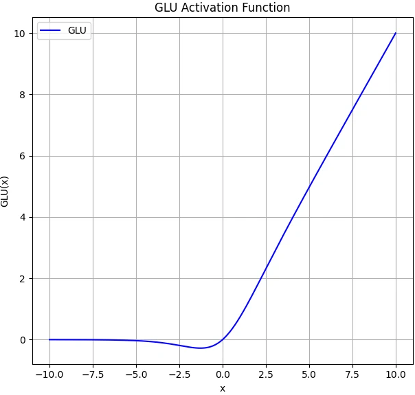 GLU에서 입력 절반을 나눈다는 아이디어는 공유하지만 sigmoid를 통해 gating하는 효과를 제거한 버전입니다. sigmoid를 안 쓰기 때문에 연산량 측면에서 단순하다는 장점은 있지만, Gating의 효과를 볼 수 없기 때문에 정보의 중요성에 대한 파악이 어렵고 따라서 성능이 좋지 않습니다. 거의 주목을 받지 못한 Activation Function입니다.